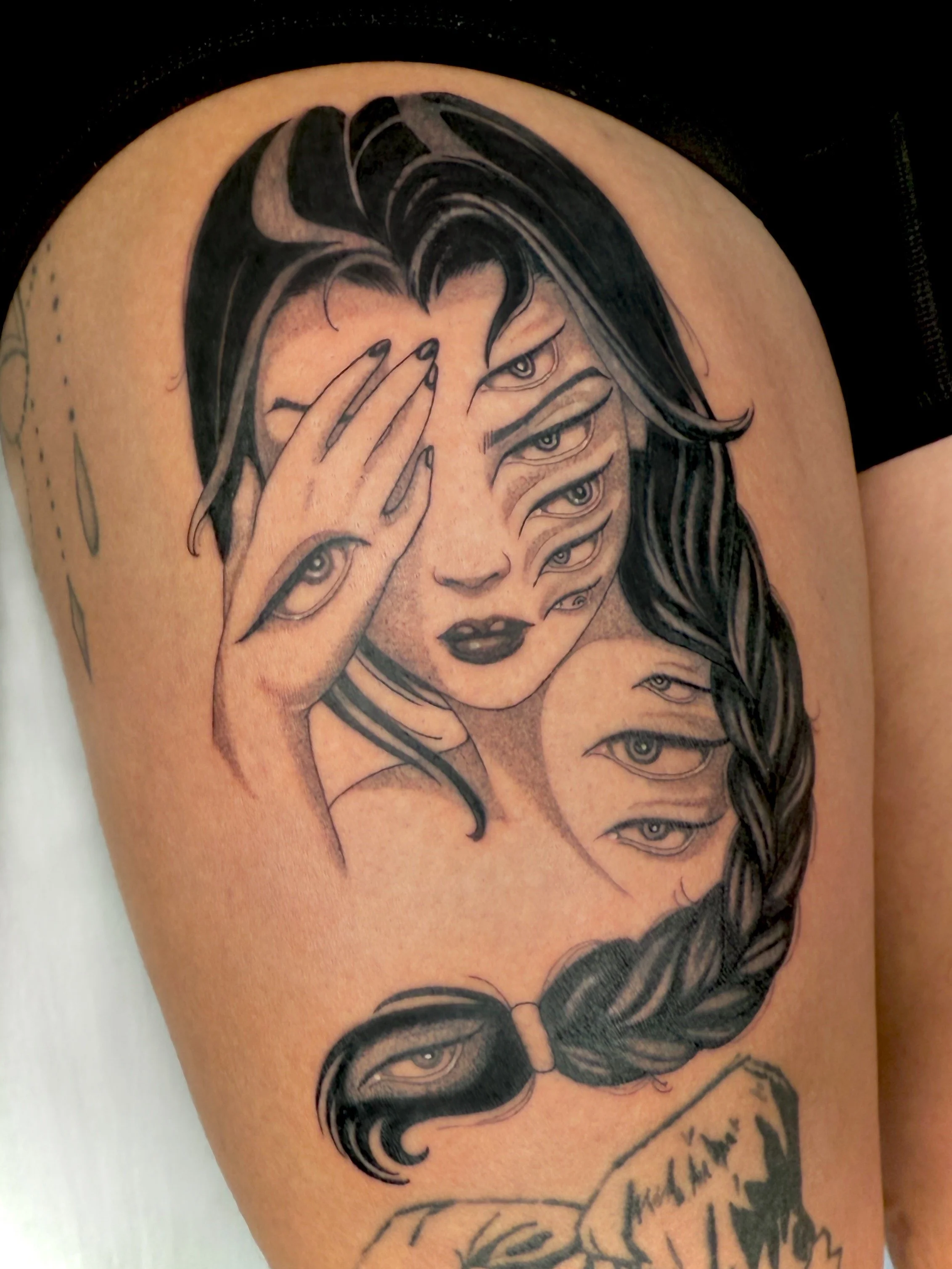 Ange Franco (they/them) is a Filipino American tattoo artist specializing in fine line illustrative work. They enjoy connecting people in diaspora to their culture using imagery that is authentic and unique to them.